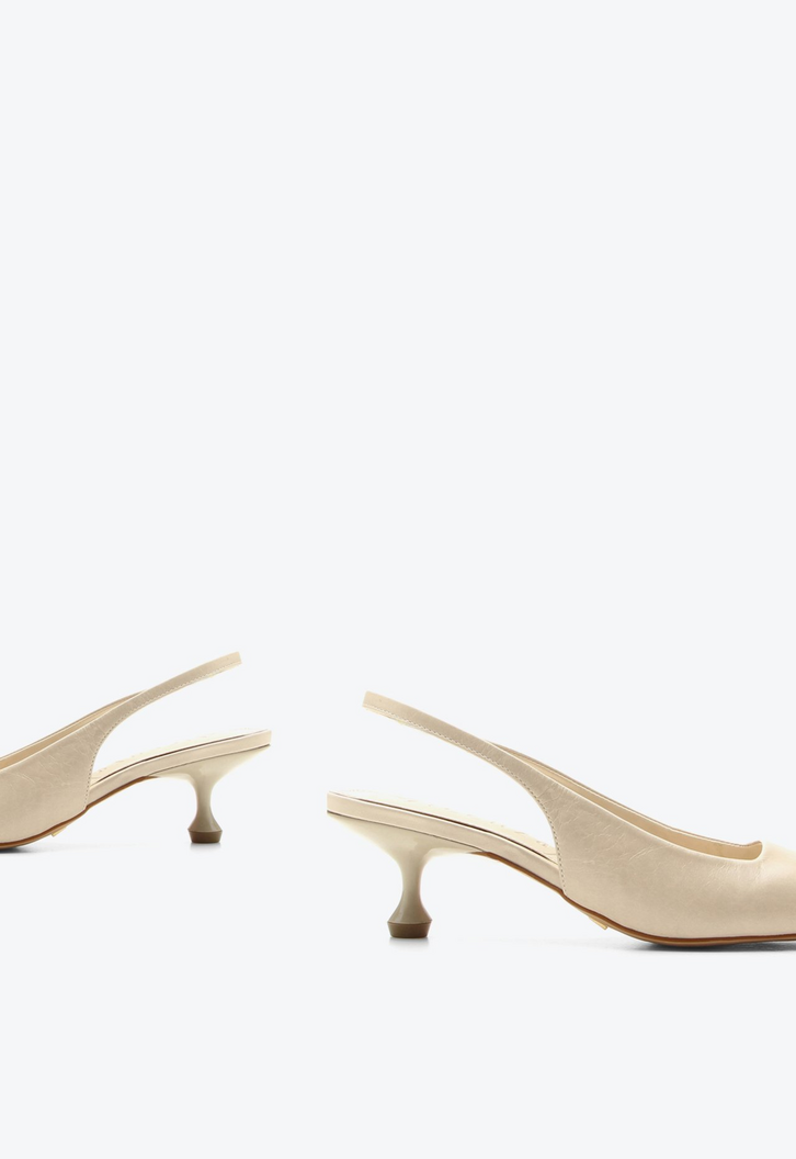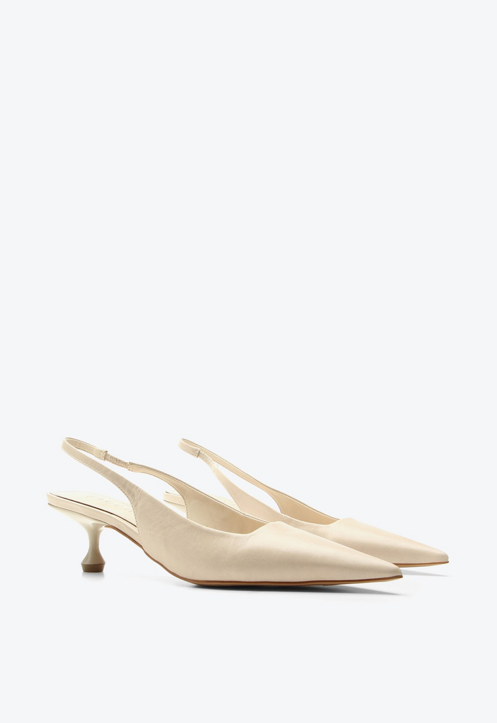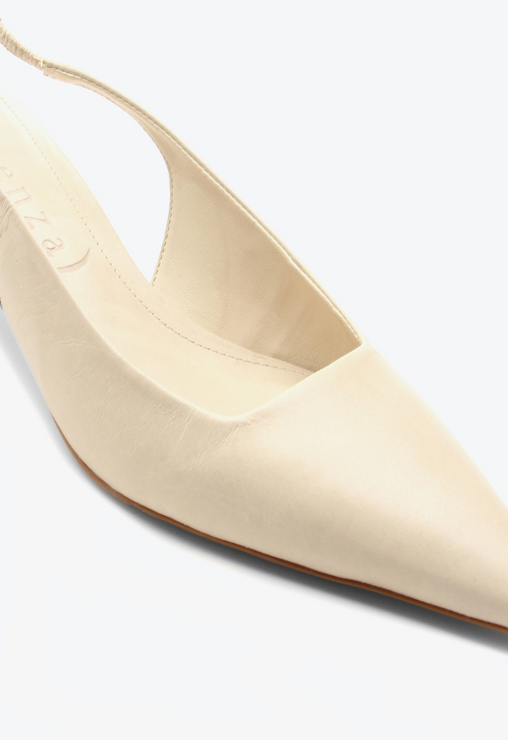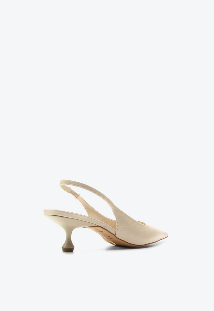 Slingback de salto médio bege. Com uma construção refinada, ele completa o visual garantindo sofisticação na medida certa! Um essencial da temporada, que adiciona um toque de luxo discreto e é perfeito para transitar entre diferentes ocasiões com estilo.