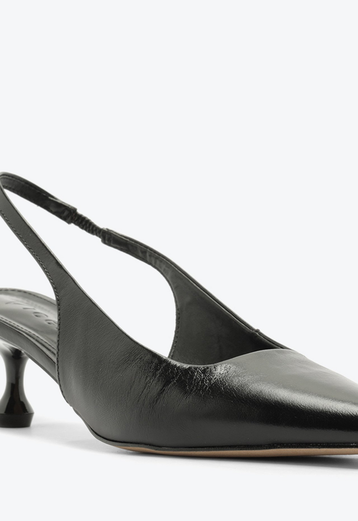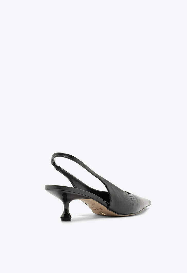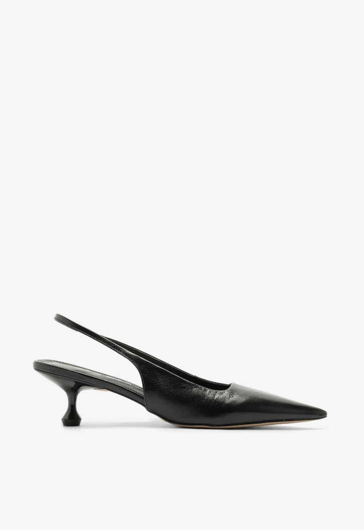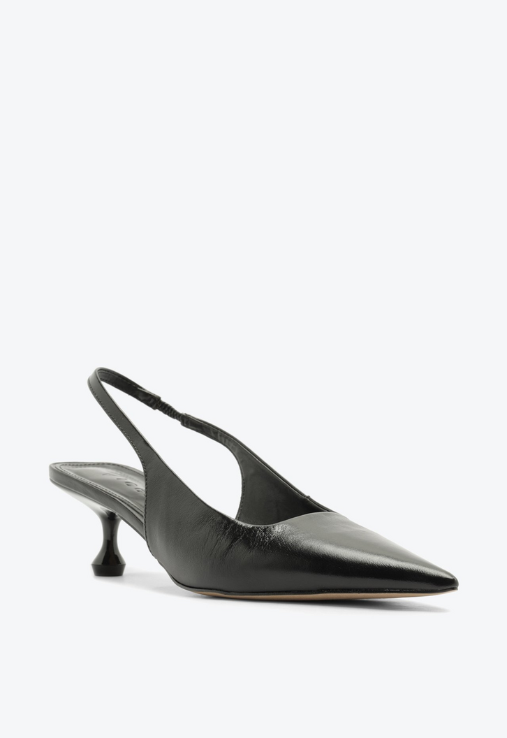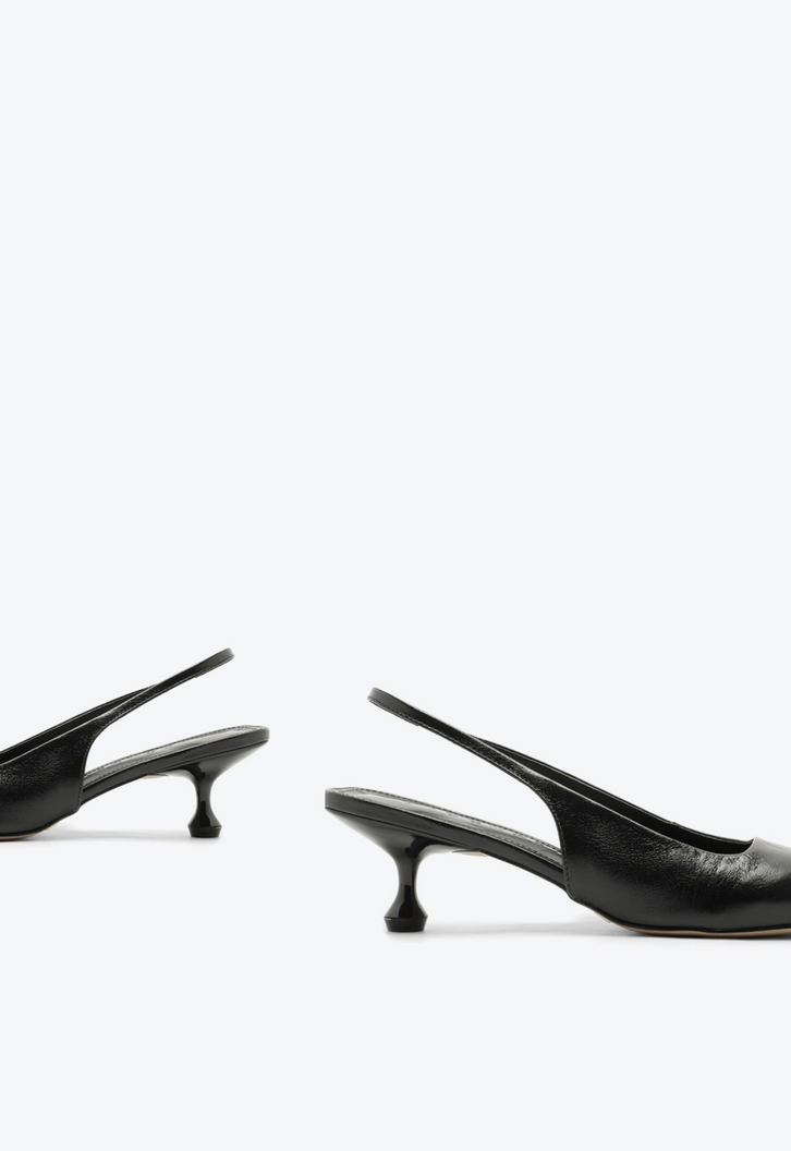 Slingback de salto médio preto. Com uma construção refinada, ele completa o visual garantindo sofisticação na medida certa! Um essencial da temporada, que adiciona um toque de luxo discreto e é perfeito para transitar entre diferentes ocasiões com estilo.